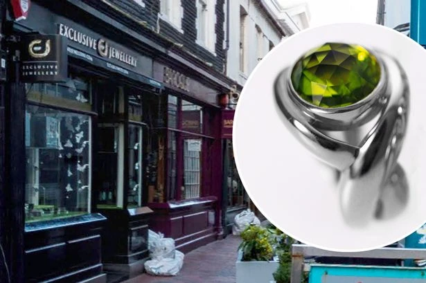 Ảnh chụp cửa hàng trang sức và chiếc nhẫn kim cương bị "nuốt chửng"