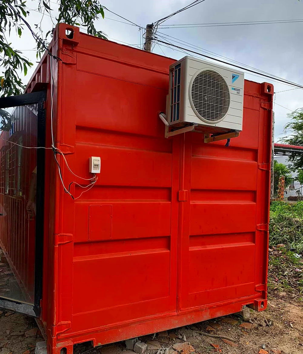 Chốt làm bằng thùng container gắn máy lạnh.