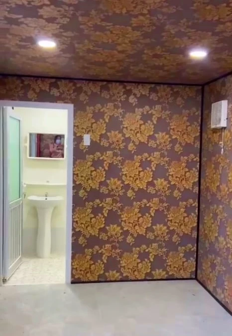 Tường được dán giấy.