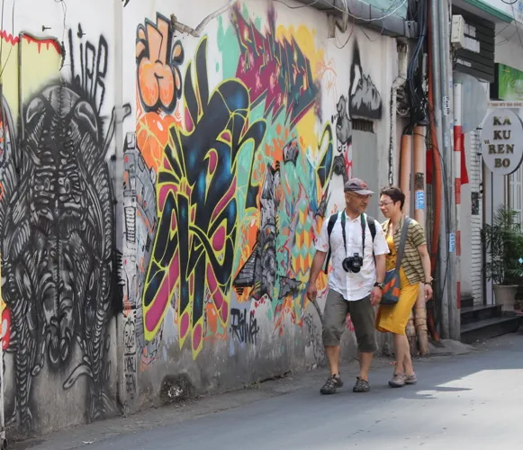 Ghi nhận, tranh Graffiti còn được hiện diện tại phố Nhật Bản (đường Ngô Văn Năm, Q.1). Cả một dãy tường được trang trí bằng hàng chục bức tranh đa dạng về màu sắc và nội dung.