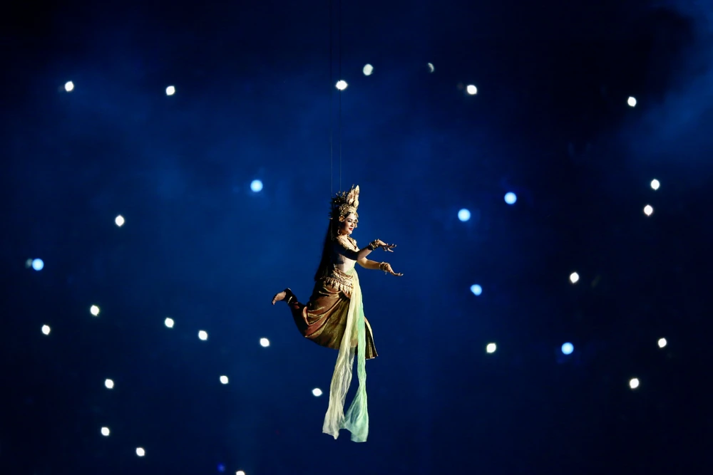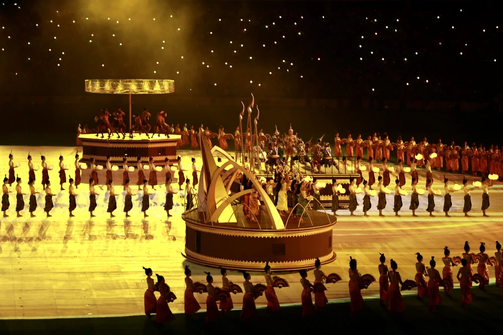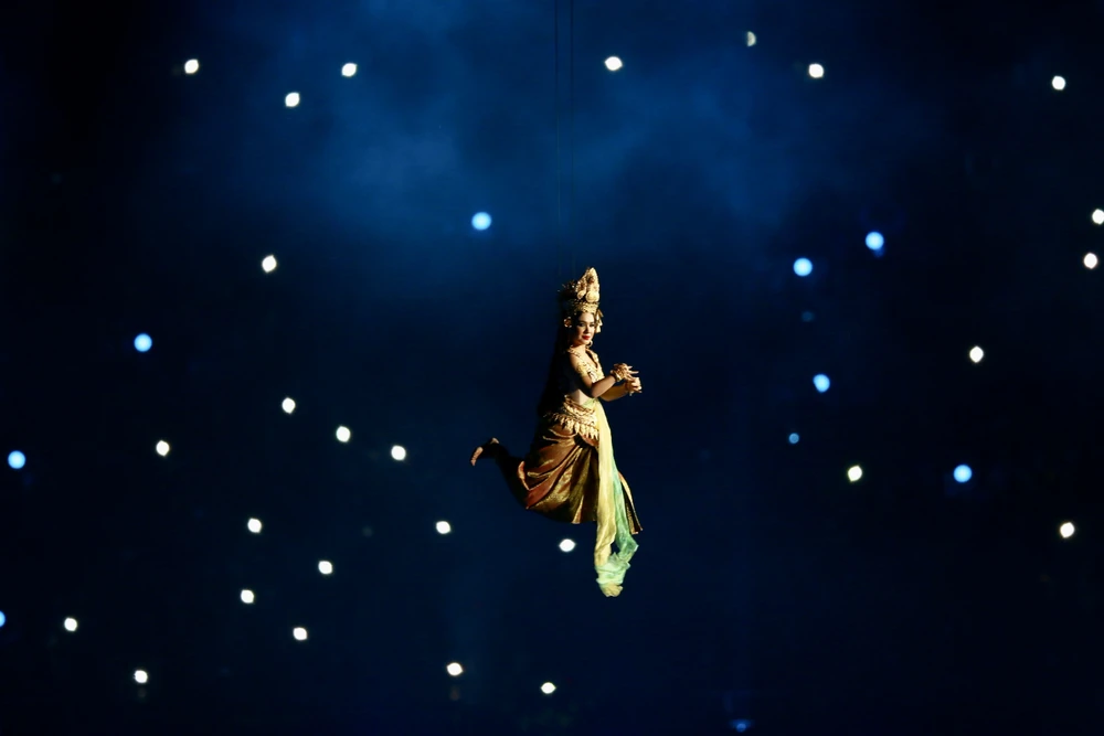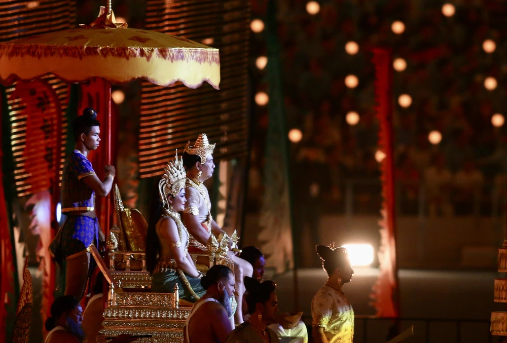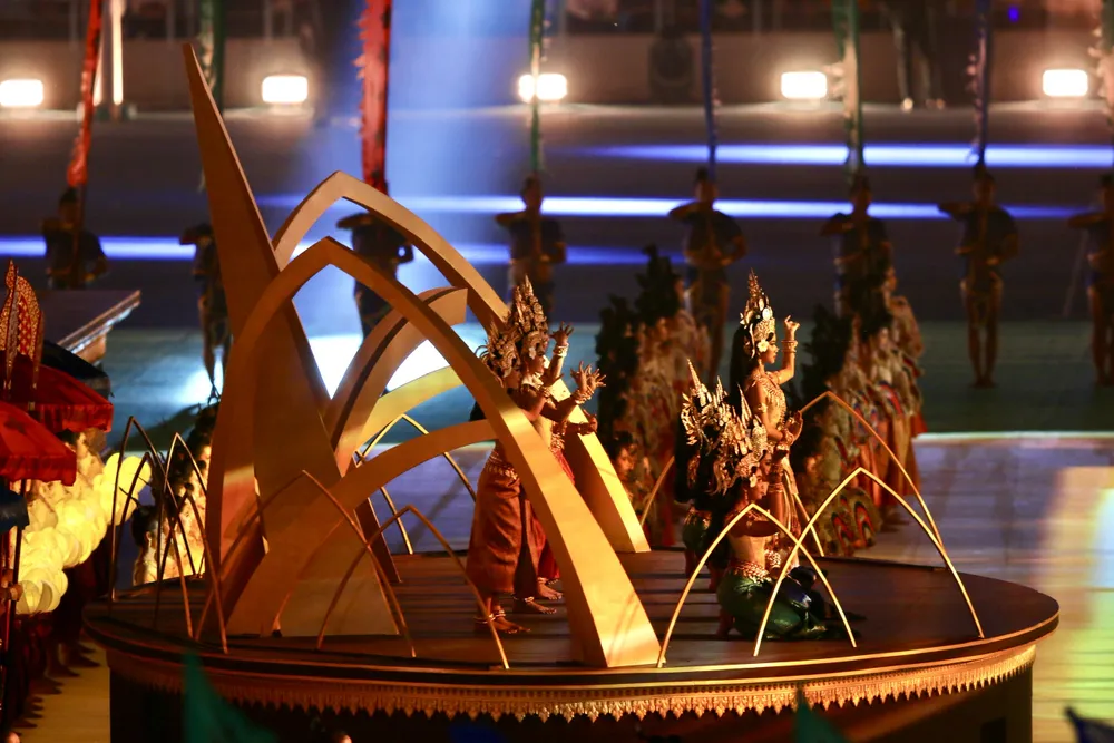 Tiết mục nghệ thuật mở màn SEA Games 32 mang tên "The birth of Khmer Kingdom" với hình tượng nữ thần Champa và nói về sự ra đời của đất nước Campuchia. |