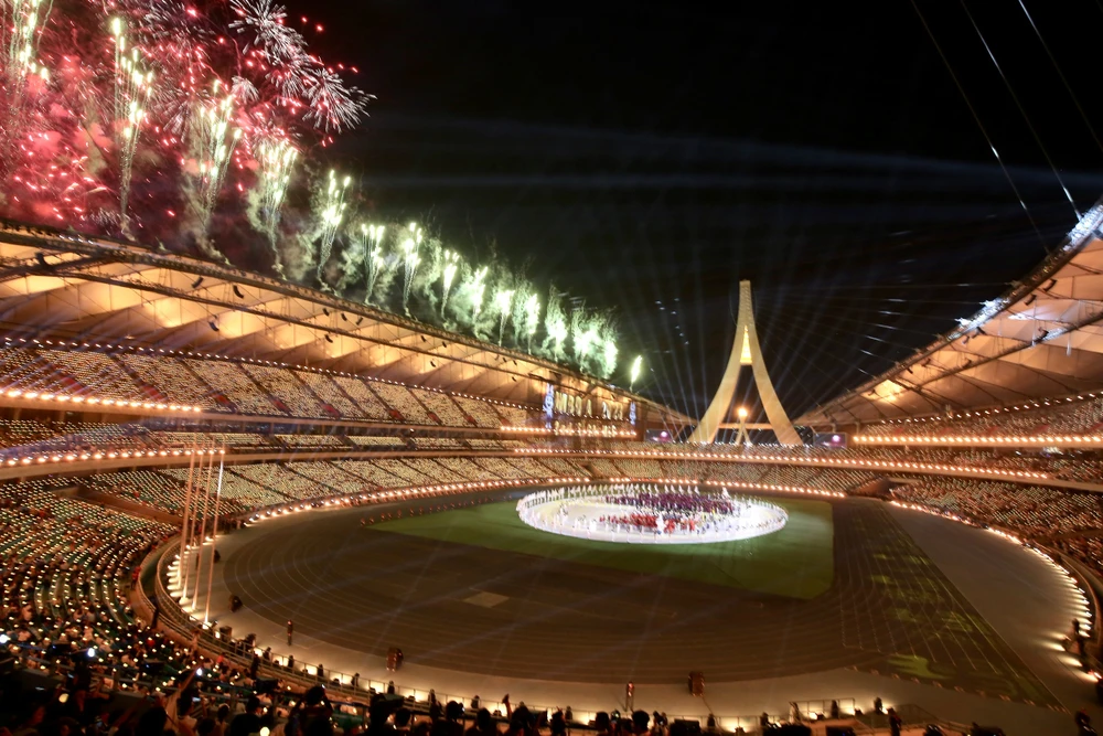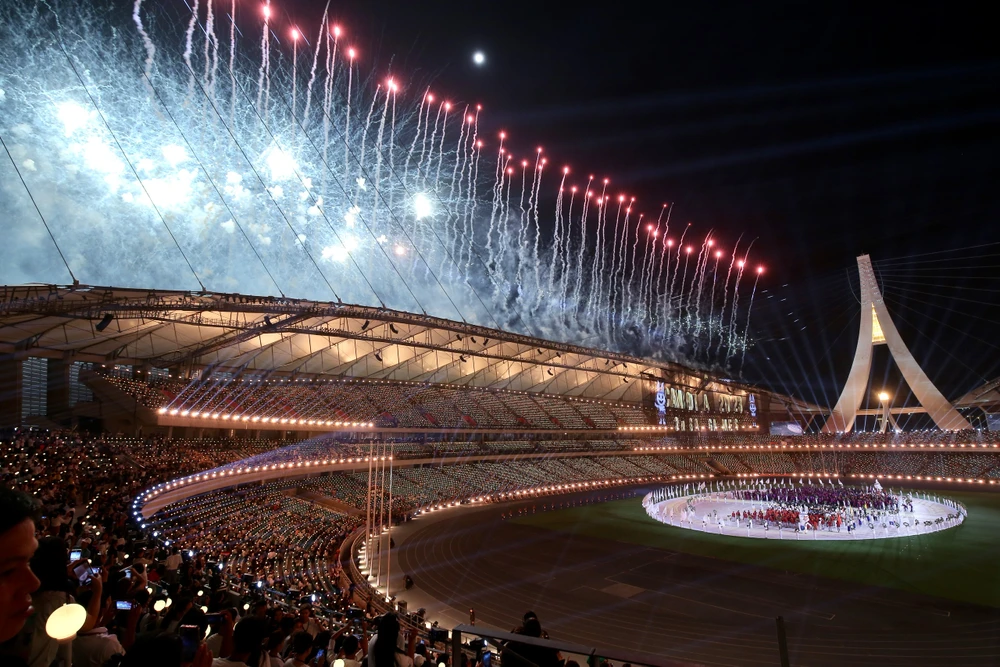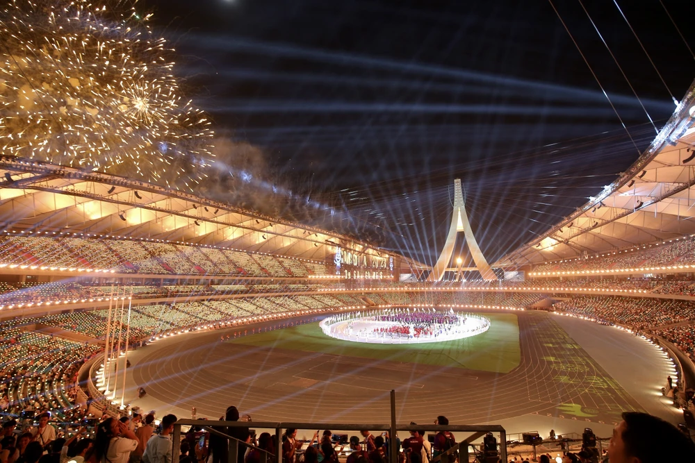 Pháo hoa sáng rực bầu trời đánh dấu khai mạc SEA Games 32. |