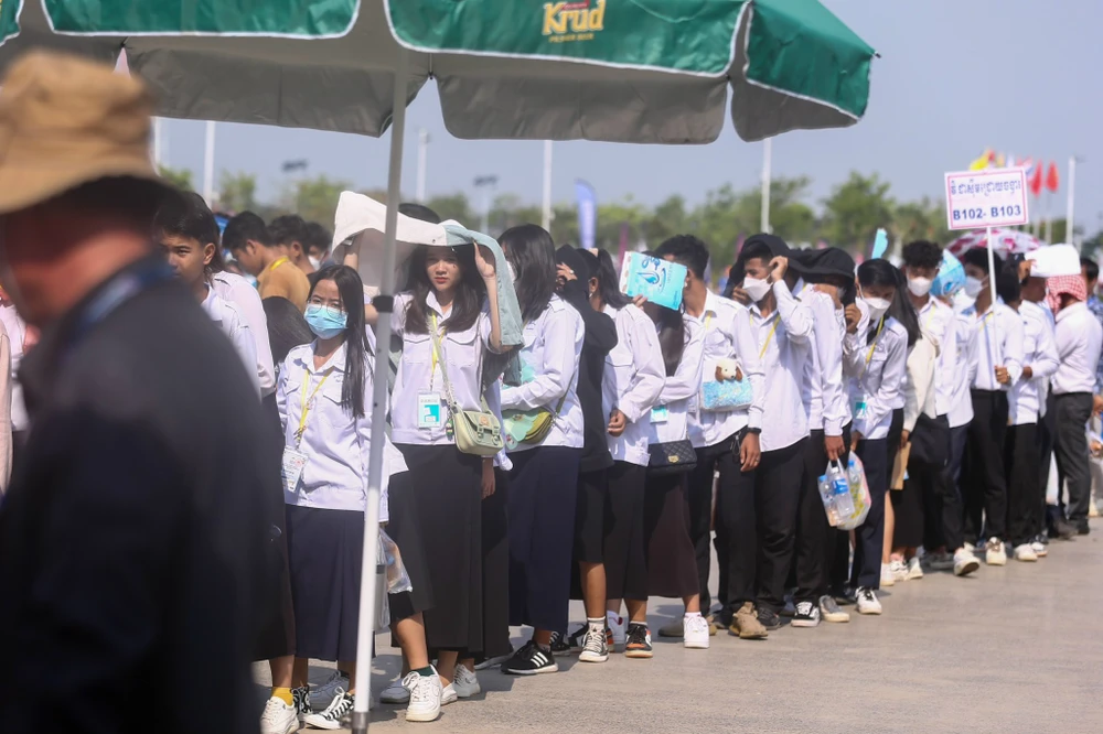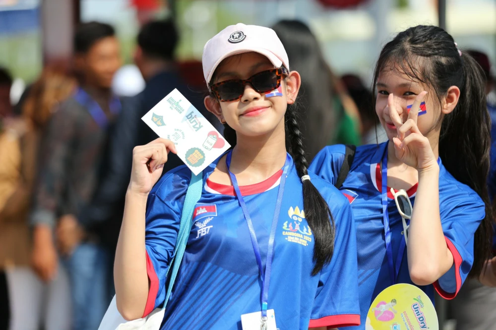 Các CĐV được phát vé miễn phí và nô nức vào sân Morodok Techo trước lễ khai mạc SEA Games 32 |