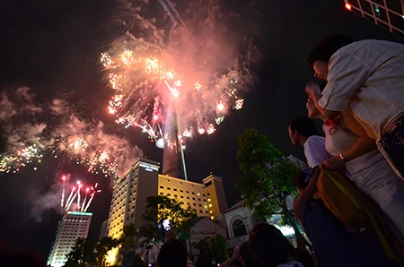 Kéo dài 15 phút, màn trình diễn là sự kết hợp giữa hiệu ứng pháo hoa nghệ thuật được nhập khẩu từ Pháp, Tây Ban Nha, ánh sáng trắng và âm thanh. Phần nhạc nền được các chuyên gia hàng đầu người Pháp thiết kế đặc biệt riêng cho chương trình này. Với ba vị trí bắn tại nóc toà nhà Bitexco Office Building (BOB) tại 19 – 25 Nguyễn Huệ, quận 1; tại sân đỗ trực thăng và nóc toà nhà Bitexco Financial Tower.