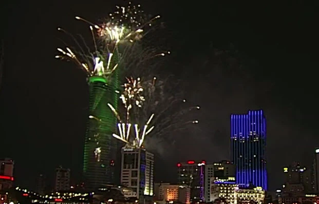 Video TP.HCM rực sáng pháo hoa chào mừng ngày 30-4. Huyền Vi thực hiện.