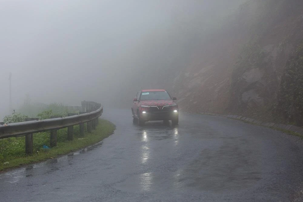 Sau khi tới Thành phố Hồ Chí Minh và ngược ra Hà Nội, hai mẫu xe VinFast bắt đầu chinh phục địa hình “khó nhằn” nhất Việt Nam là các tỉnh Tây Bắc. Tổng hợp các loại thời tiết khắc nghiệt như sương mù, mưa phùn trên đường đèo dốc, trơn trượt đã xuất hiện ngay khi xe di chuyển lên Hà Giang và Đồng Văn. Hai mẫu xe của VinFast như những chiến binh bền bỉ bất chấp thời tiết, địa hình hiểm trở.