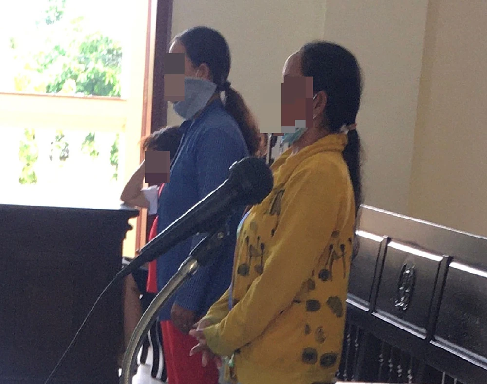 Hai bà hàng xóm trong phiên tòa phúc thẩm tại TAND TP Cần Thơ. Ảnh: NHẪN NAM