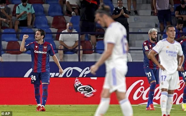 Hàng thủ lỏng lẻo của Real Madrid tạo cơ hội cho Levante ghi 3 bàn trong hiệp 2. Ảnh: AP.