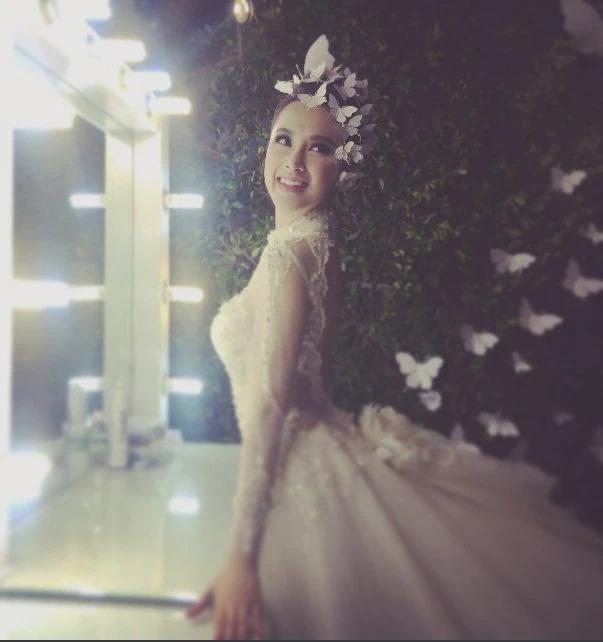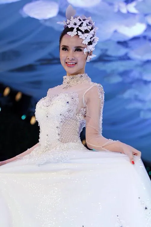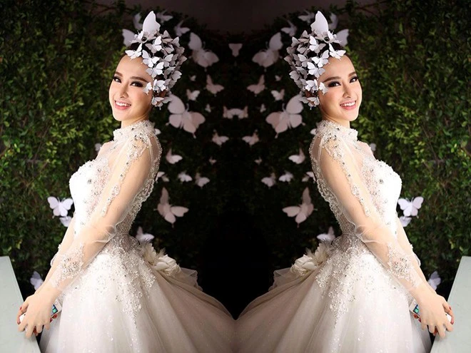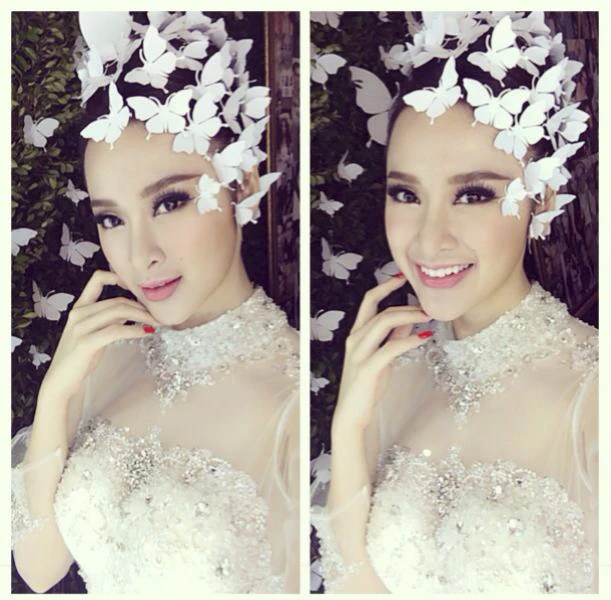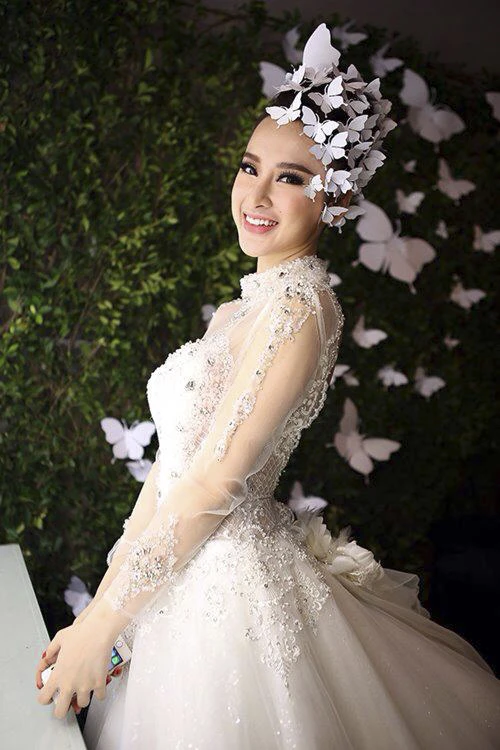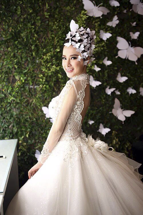 Sáng nay (19.4), tham dự một sự kiện diễn ra tại TP.Hồ Chí Minh, Angela Phương Trinh tiếp tục trở thành tâm điểm của giới truyền thông khi diện bộ váy cưới của NTK áo cưới Minh Lộc. Trong bộ váy cưới có giá 200 triệu đồng này, Angela Phương Trinh lộng lẫy và rạng rỡ như một càng công chúa xinh đẹp hút mọi ánh nhìn.