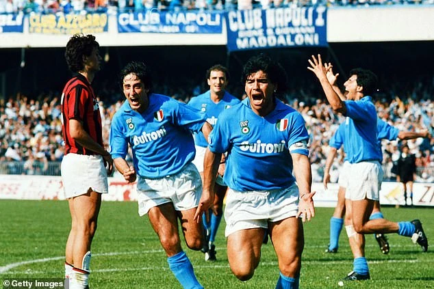 Người dân Napoli coi Maradona là thánh khi ông mang về 2 chức vô địch Serie A duy nhất trong lịch sử CLB. ẢNH: GETTY