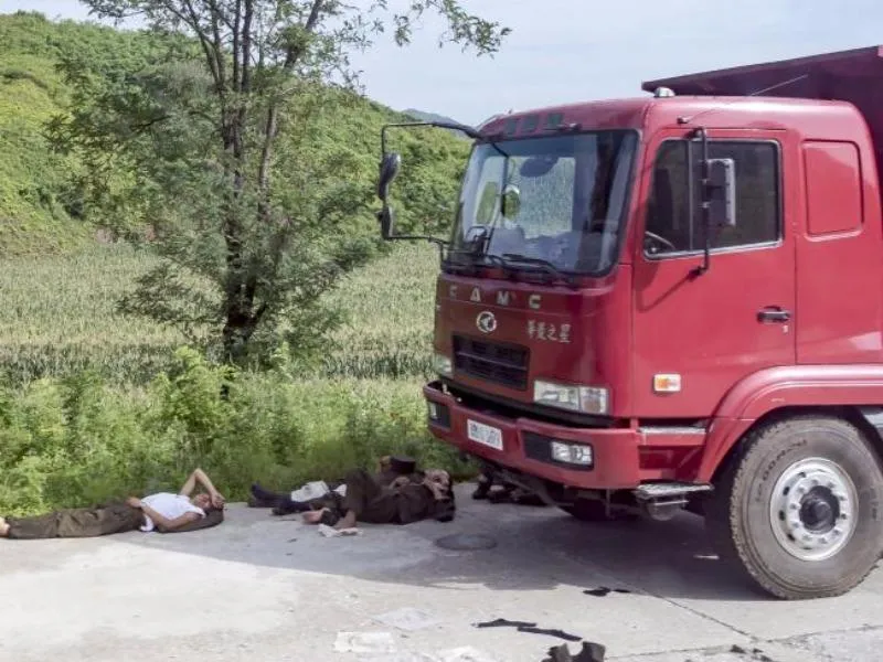 Binh sĩ Triều Tiên ngủ bên lề đường. Ảnh: PEN NEWS
