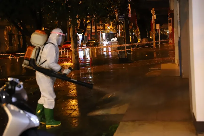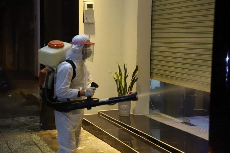 Nhà số 41 Hoàng Diệu, nơi tạm trú của bệnh nhân 601 mắc COVID-19 được phun khử trùng trước khi dỡ bỏ cách ly.