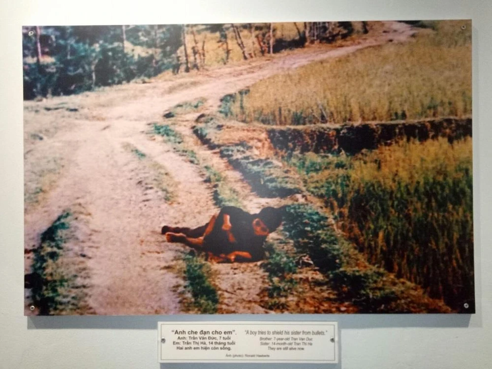 Anh che đạn cho em với chú thích gây tranh cãi giữa Bảo tàng chiến tích và Sở VH-TT&DL tỉnh Quãng Ngãi. Ảnh: TRÚC PHƯƠNG