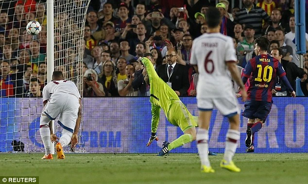 Chiến thắng 3-0 của Barcelona trước Bayern Munich trong trận bán kết lượt đi Champions League có công rất lớn của Messi. Trong ảnh: Messi đi bóng qua người Boateng khiến cầu thủ này trượt ngã rồi ghi bàn nâng tỉ số lên 2-0.