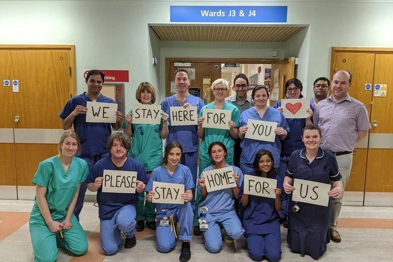 Các y, bác sĩ Anh nhắc nhở mọi người ở nhà. Ảnh: REUTERS