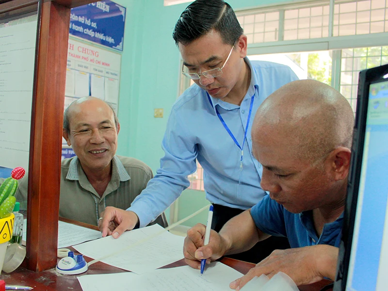 Ông Trương Hồng Phong, Chủ tịch phường 13, quận Gò Vấp, thường trực tiếp giải quyết hồ sơ của người dân. Ảnh: LÊ THOA