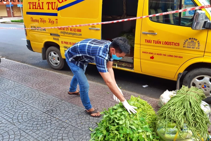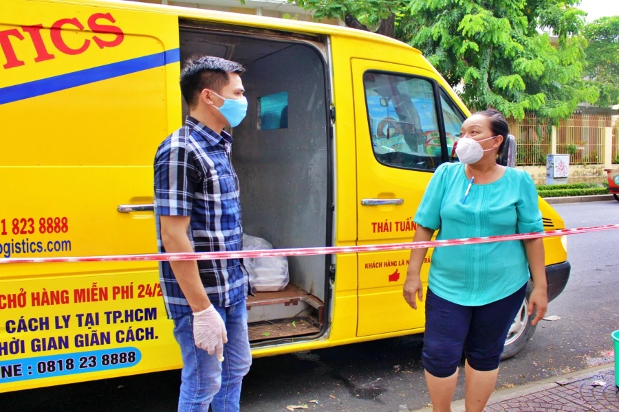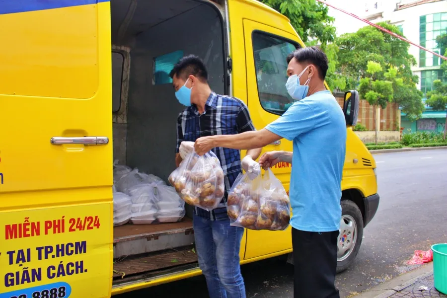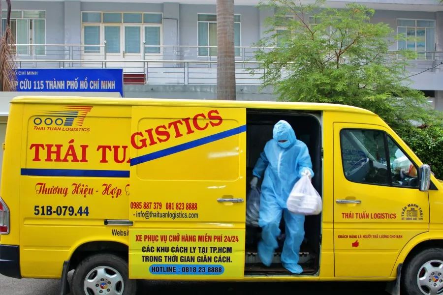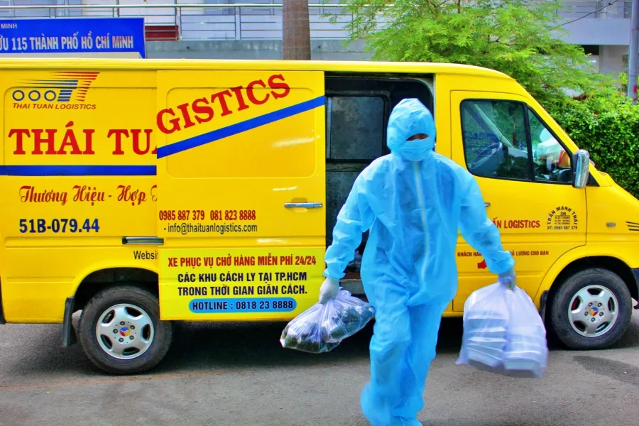Từ lúc TP.HCM áp dụng Chỉ thị 16, các thành viên của đội xe chở hàng miễn phí cho các khu cách ly, bệnh viện tại TP.HCM của Công ty TNHH Tập đoàn Thái Tuấn Logistics (Công ty Thái Tuấn) hoạt động gần như hết công suất.