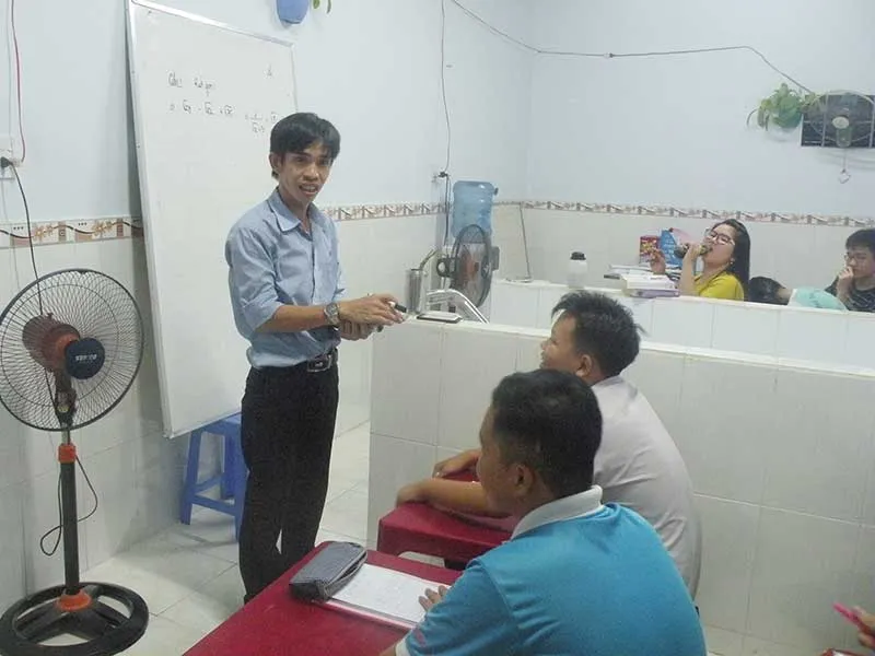 Dù lương công nhân thấp nhưng chính anh đã tự bỏ tiền túi mua bảng, bàn ghế, sắm sửa quạt… mở lớp đón học trò nghèo xung quanh tới học. Ban đầu chỉ 3-5 em nhưng tiếng lành đồn xa, đến nay lớp học đã có hơn 20 em với đủ các khối từ 6 đến 9, trong đó có mấy em là con của đồng nghiệp cùng công ty. Mỗi tối anh dành hơn hai tiếng để dạy cho các em. Các em học sinh khối 9, 8 sẽ học ở lầu một, còn học sinh lớp 6, 7 học ở tầng trệt của căn nhà trọ.