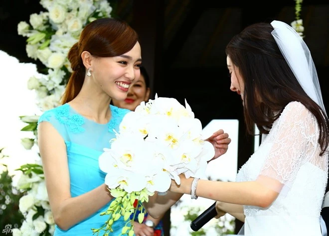 | Đường Yên duyên dáng với vai trò phù dâu. Không bí mật tổ chức hôn lễ nhưng Dương Mịch và Lưu Khải Uy chỉ mời một số bạn bè thân thiết. |