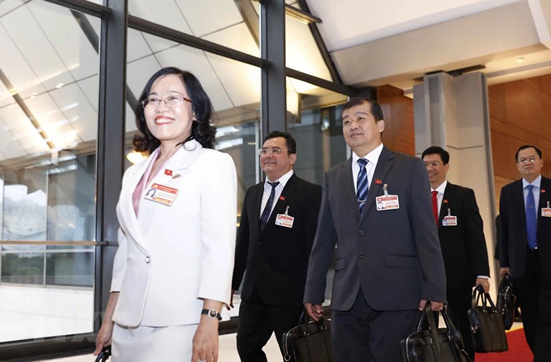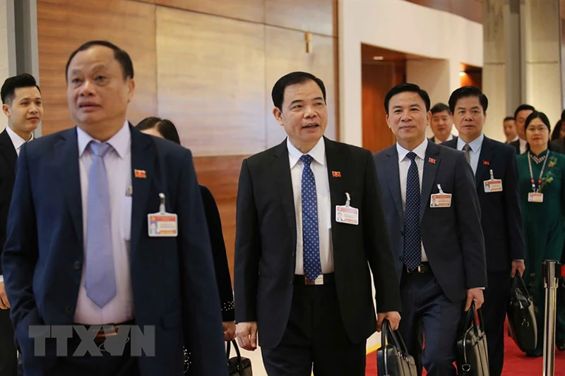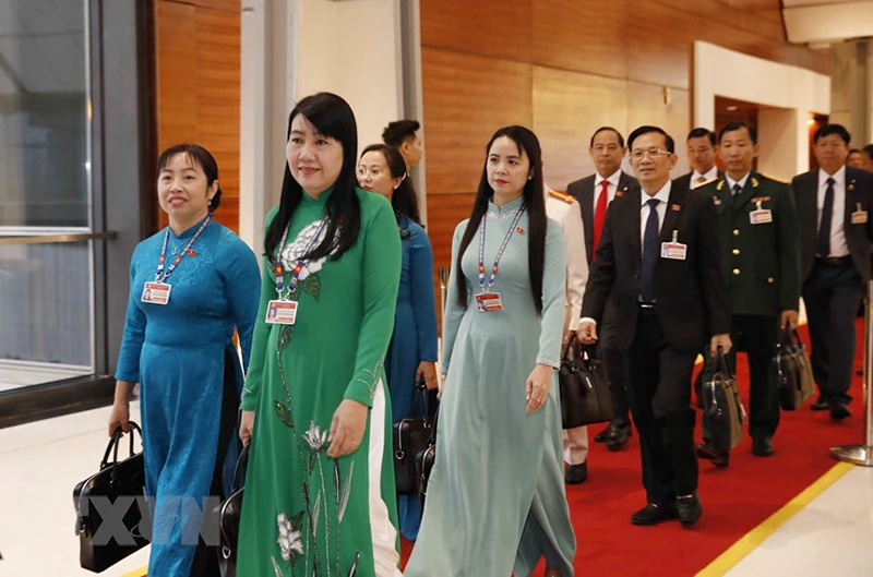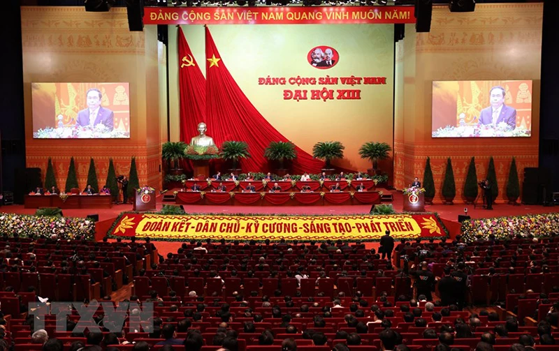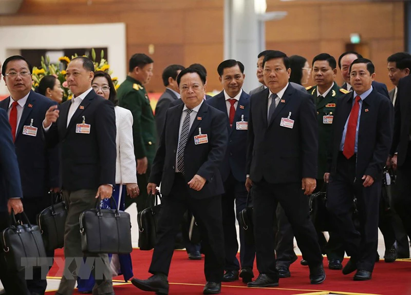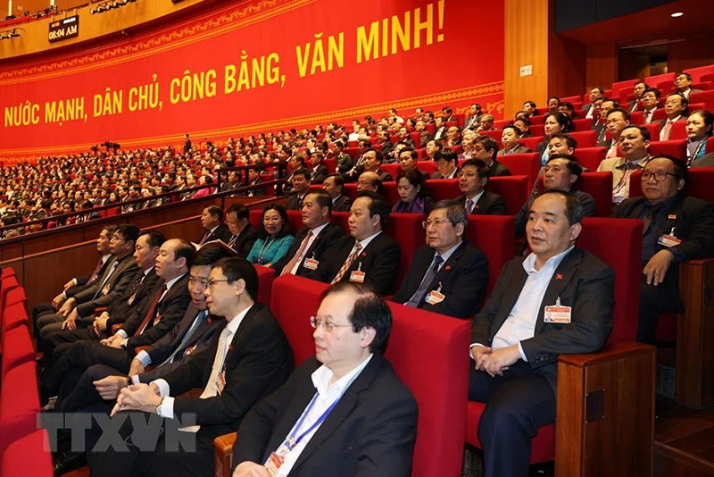 Các đại biểu đến dự ngày làm việc thứ ba Đại hội XIII của Đảng. Ảnh: TTXVN