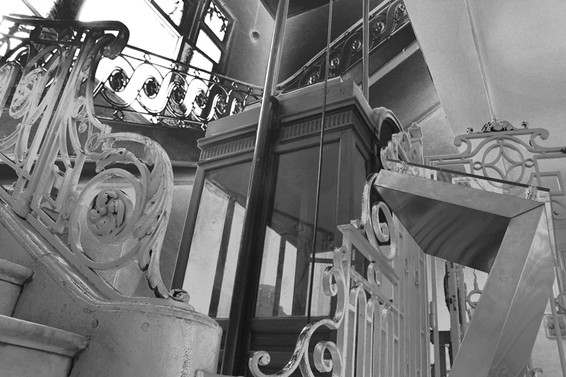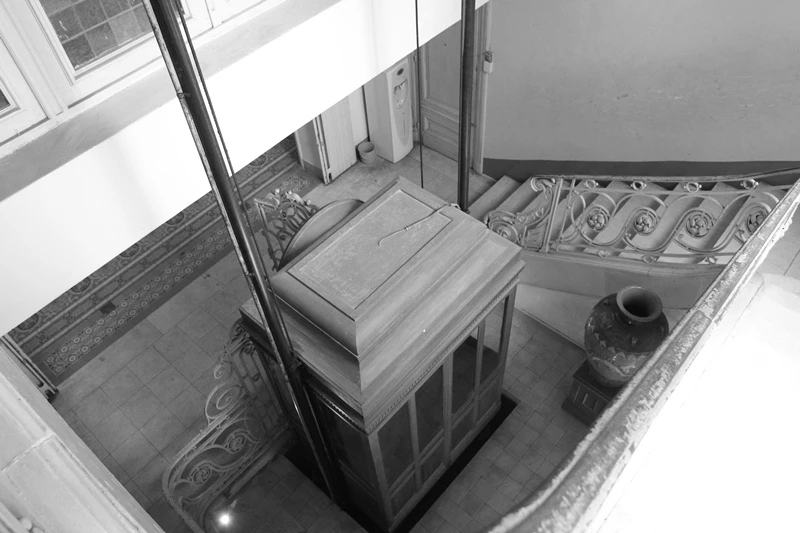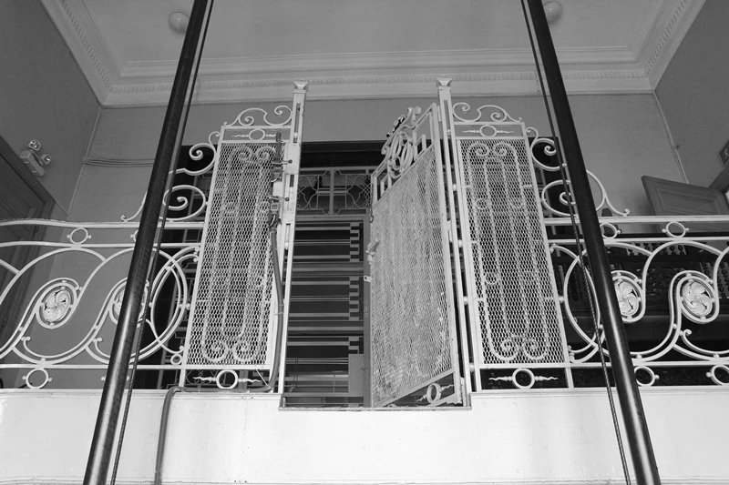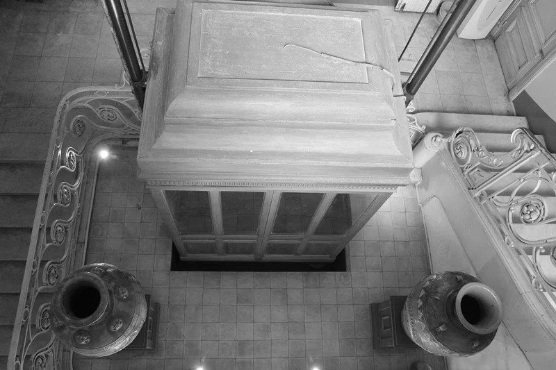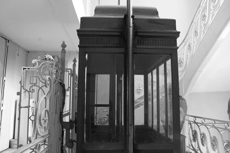Thang máy được sử dụng trong tòa nhà từ những năm 1929. Dinh thự của chú Hỏa là nơi đầu tiên ở Sài Gòn có thang máy. Tuy là sản phẩm của châu Âu nhưng thang máy lại được làm bằng gỗ, bên trong được bài trí, chạm trổ như một chiếc kiệu của quan.