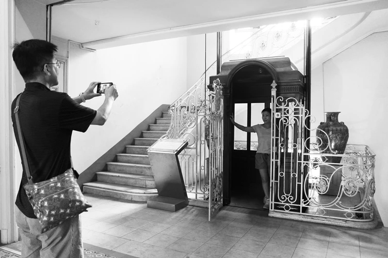“Hiện nay, thang máy này chỉ dùng để chuyên chở những hiện vật nặng như tranh sơn mài, các pho tượng đá. Đôi khi còn dành cho những vị khách tàn tật, già yếu. Thang máy sử dụng rất đơn giản, người dùng vào bên trong thang, khép cửa lại và nhấn nút điều chỉnh theo ý muốn” - chị Lan Phương, nhân viên Bảo tàng Mỹ Thuật TP.HCM hướng dẫn.