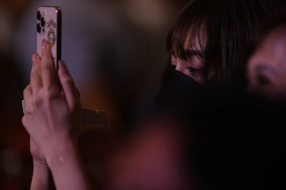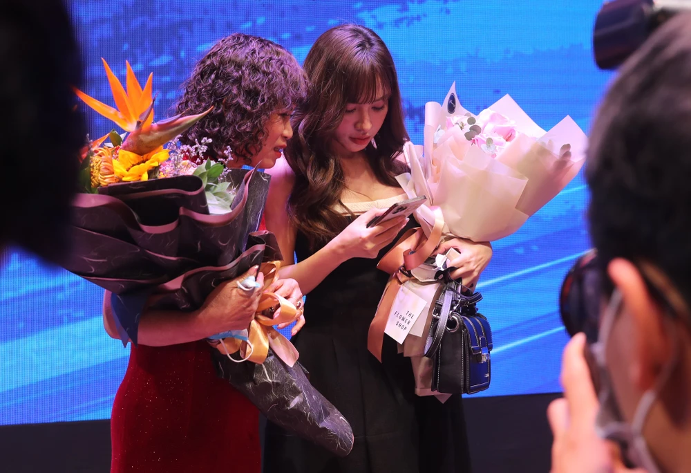 Ngồi dưới khu vực dành cho khách mời, Gia Hân không giấu được xúc động khi bạn trai mình được xướng tên ở hạng mục cao nhất Quả bóng vàng nam 2021.