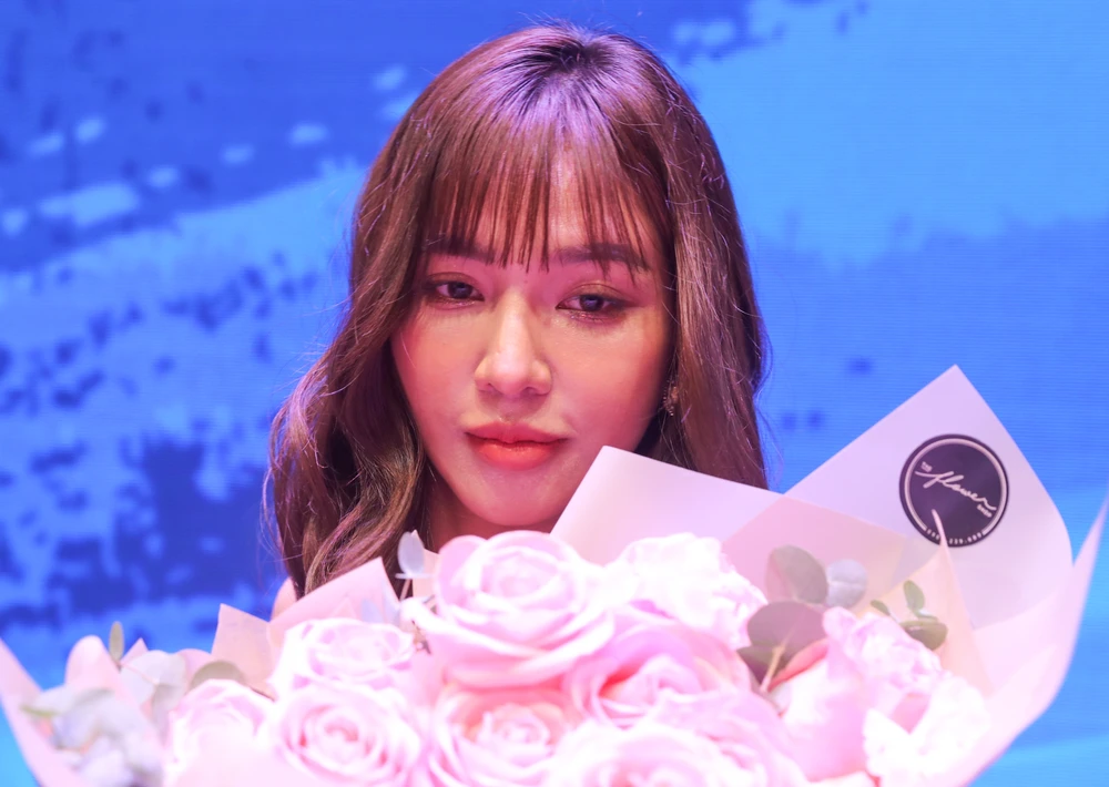 Một nửa của Hoàng Đức làm dáng chuyên nghiệp trước ống kính...
