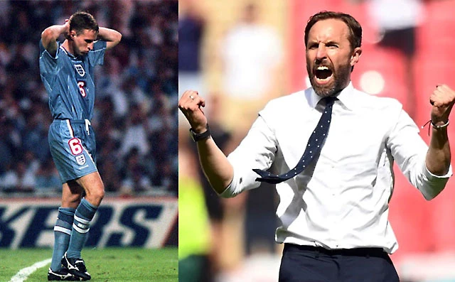 HLV Southgate muốn xóa đi nỗi ám ảnh 25 năm trước khi ông là người đá hỏng quả luân lưu khiến Anh thất bại trước Đức. Ảnh: GETTY IMAGES