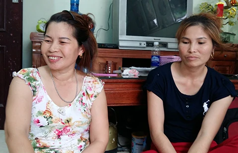 Bà Nguyễn Thị Thương - vợ ông Vươn (bìa trái) và bà Phạm Thị Hiền - vợ ông Quý vỡ òa trong niềm vui và xúc động khi nghe tin chính thức chồng mình được đặc xá. Ảnh: ĐẶNG TUYỀN