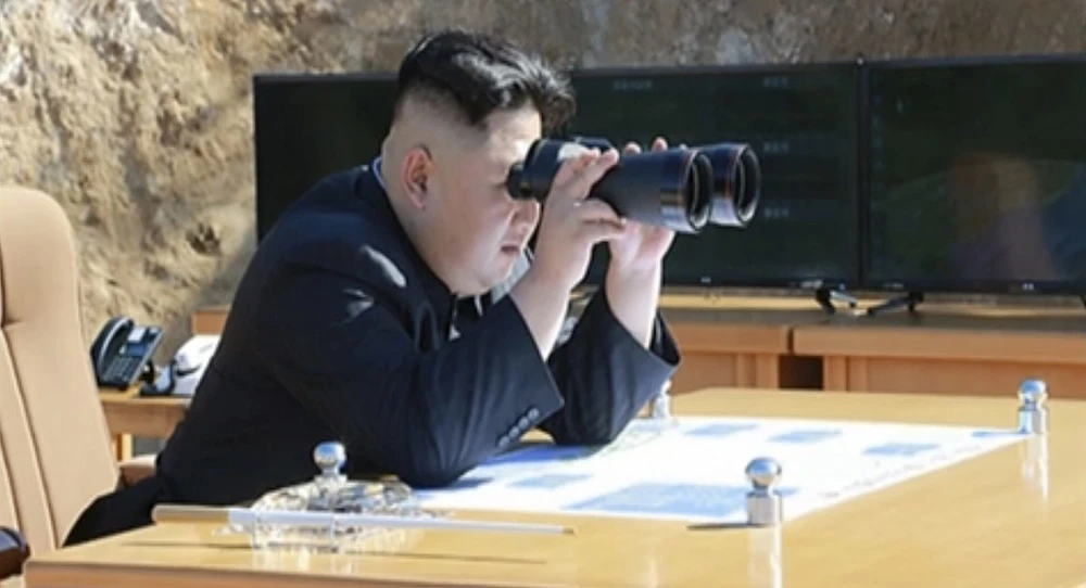 Ông Kim Jong-un đang sử dụng ống nhòm theo dõi vụ phóng tên lửa Hwasong-14