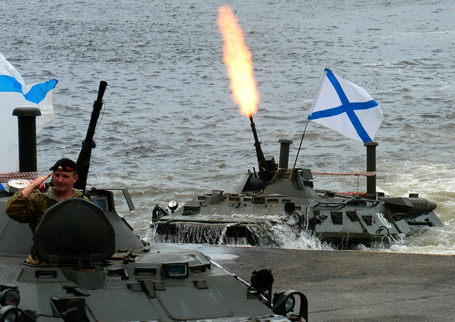 Căn cứ hạm đội Baltic của Nga phô diễn sức mạnh quân sự trên biển đồng thời tổ chức triển lãm các vũ khí và thiết bị quân sự trên bờ.