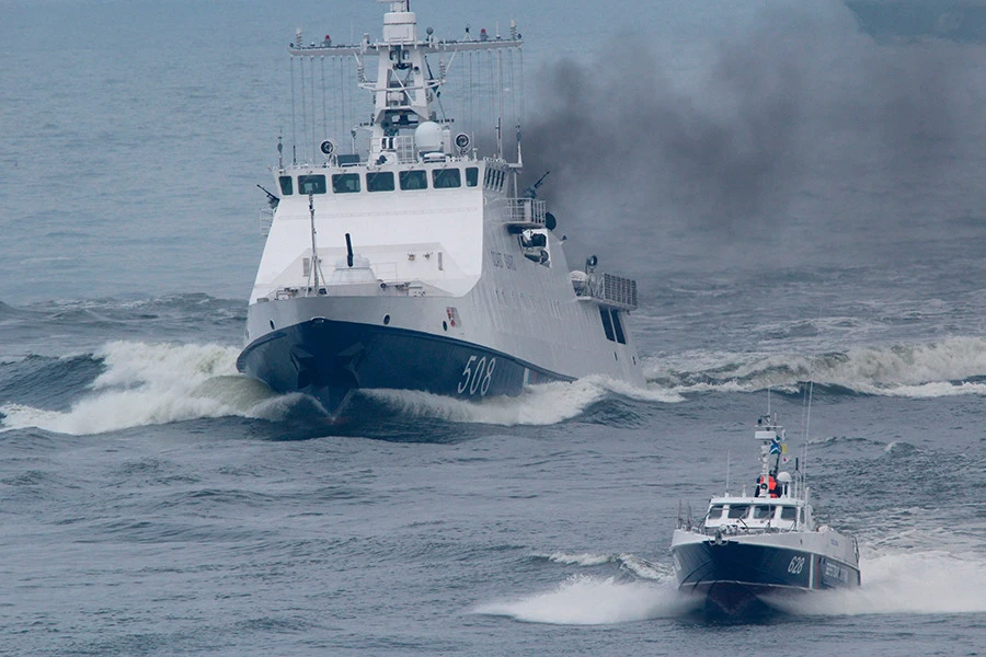 Tại vịnh Amur, Nga triển khai 13 tàu chiến gồm tàu tuần dương tên lửa Varyag, tàu săn tàu ngầm và tàu khu trục diễu binh cả ở trên bờ và trên biển.