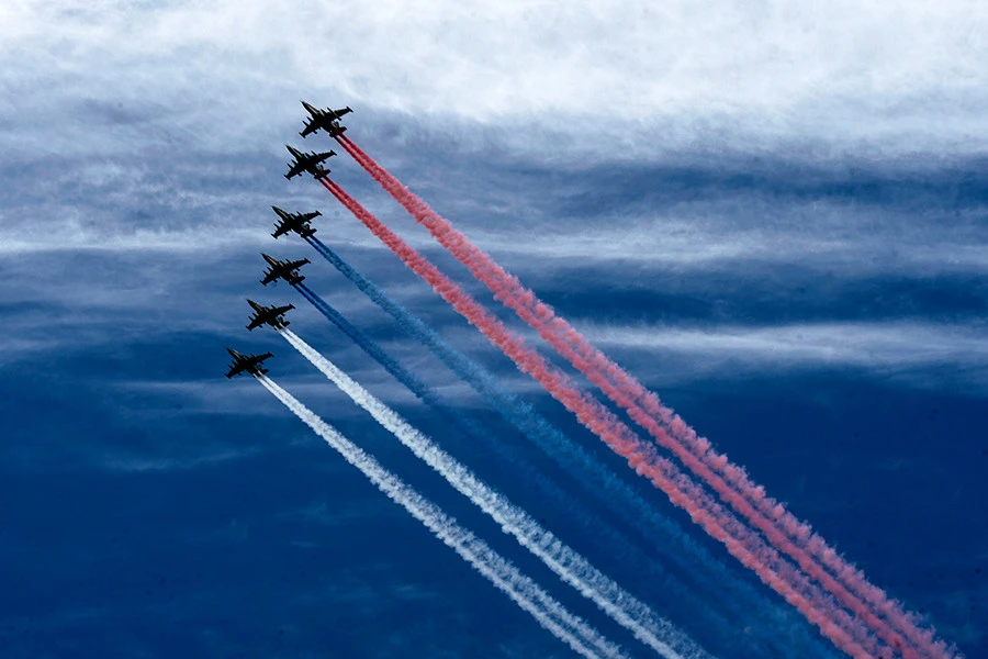 Lực lượng không quân Nga cũng tham gia diễu binh ở TP Kronshtadt. Ảnh: REUTERS