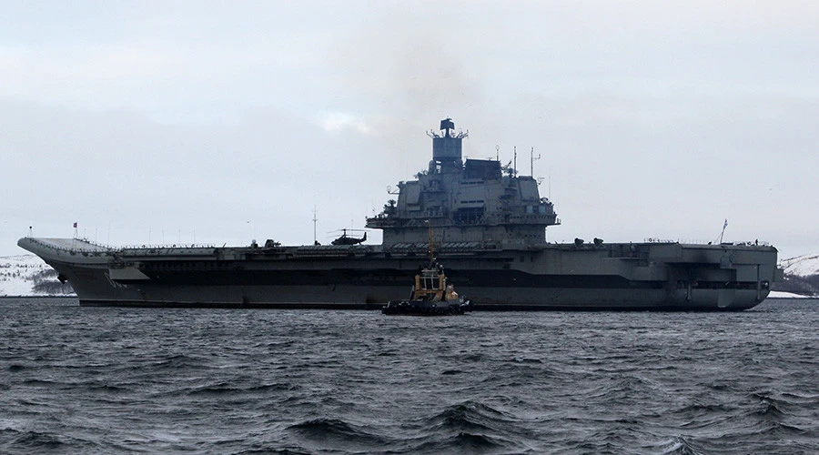 Tàu sân bay hạng nặng Đô đốc Kuznetsov của hạm đội hải quân nga dẫn đầu 30 tàu chiến và tàu ngầm tại TP Severomorsk, căn cứ chính của hạm đội miền Bắc nước Nga.