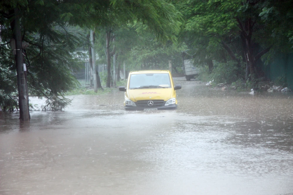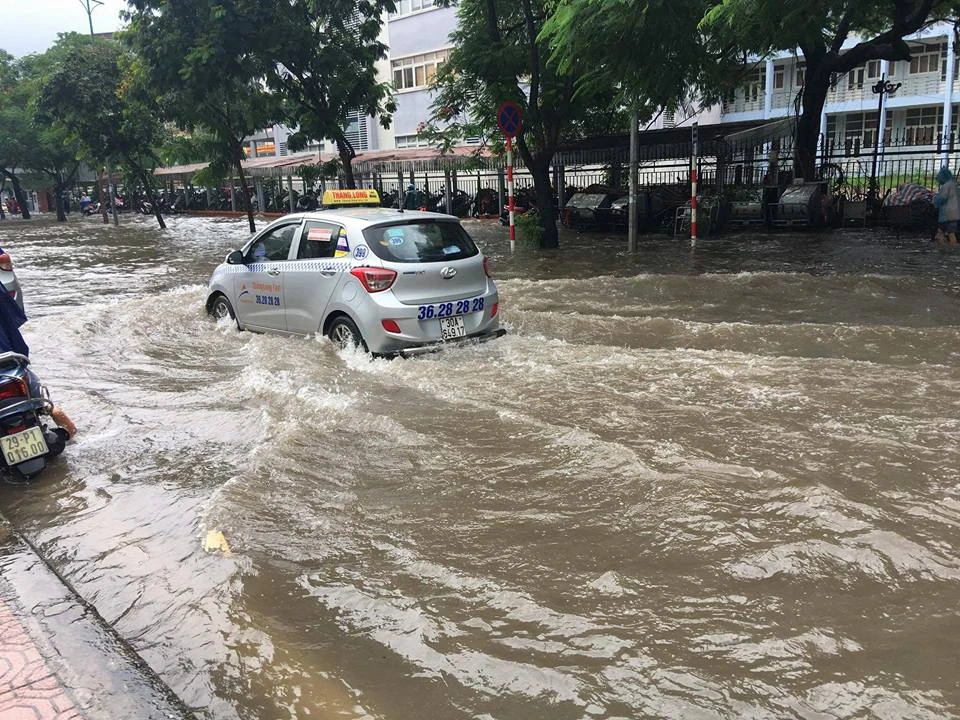 Một số đường như Tây Sơn, Thái Hà, Điện Biên Phủ... cũng hóa thành sông trong cơn mưa.