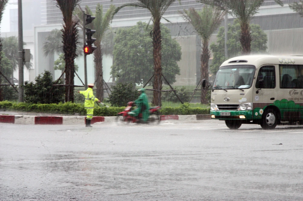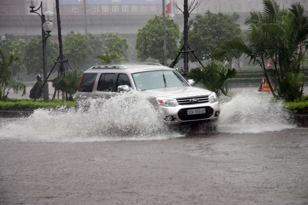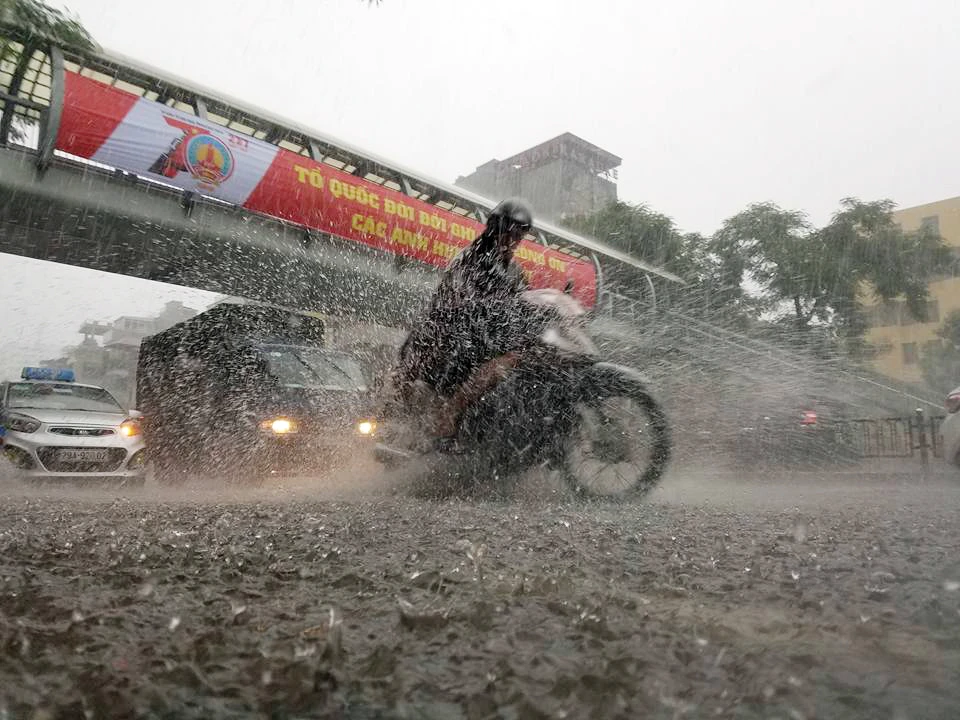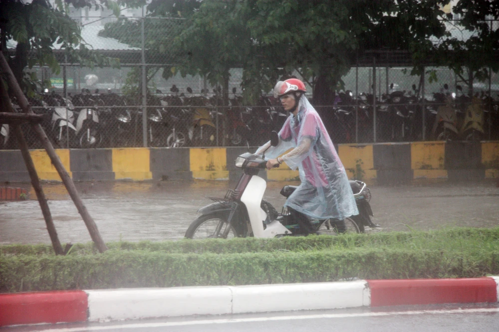Từ sáng sớm nay, do ảnh hưởng của cơn bão số 2, Hà Nội liên tục có những cơn mưa lớn.