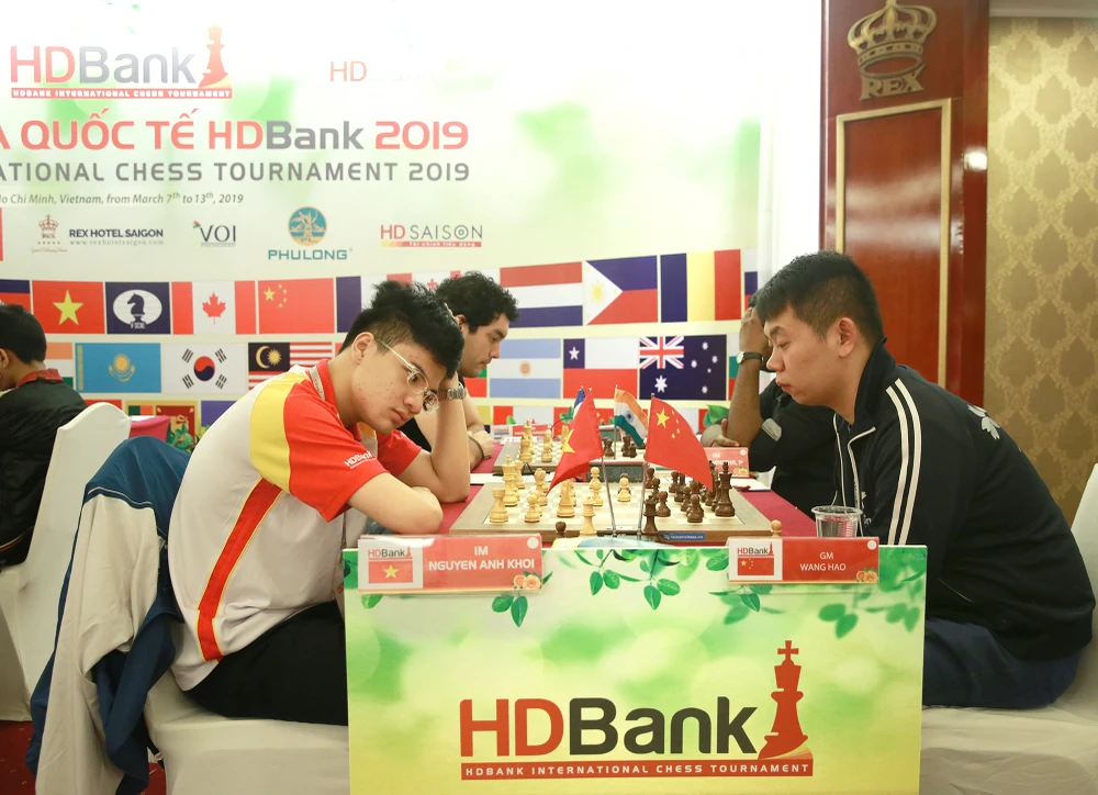 Nguyễn Anh Khôi đối đầu với kỳ thủ Trung Quốc Wang Hao tại giải cờ vua HDBandk 2019. Ảnh: CMQ