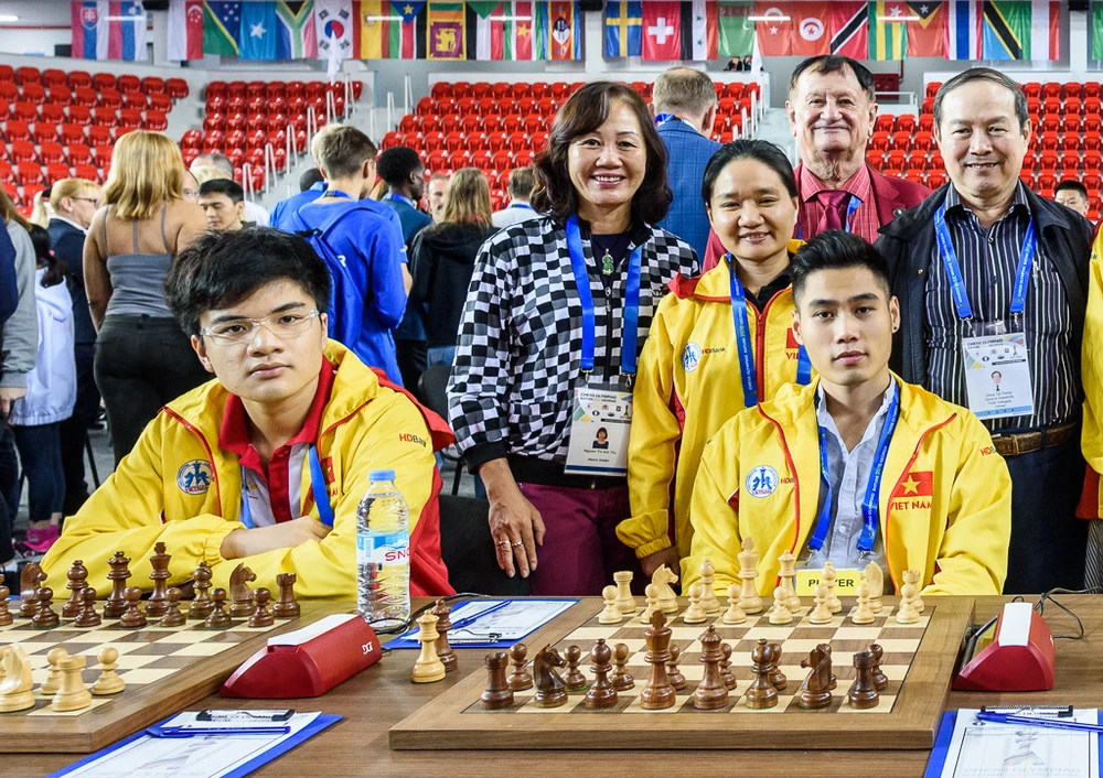 Kỳ thủ 17 tuổi Anh Khôi (trái) từng cùng đội tuyển cờ vua Việt Nam tham dự đấu trường Olympiad. Ảnh: CVN