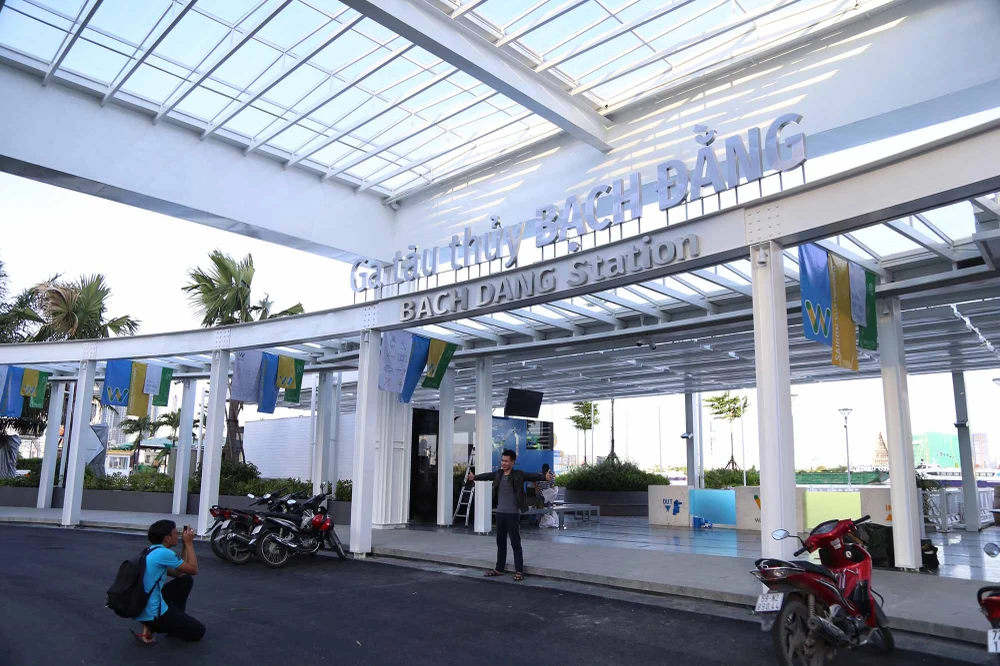 Bên trong ga tàu thủy Bạch Đằng được thiết kế khá hiện đại với các tiểu cảnh như công viên, hồ phun nước, quán cafe,... để phục vụ khách đi tàu.