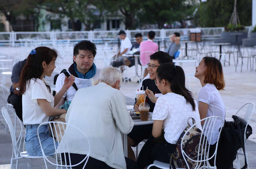 Nhiều người đến đây không chỉ đi tàu mà còn nghỉ ngơi, uống cafe ven sông.