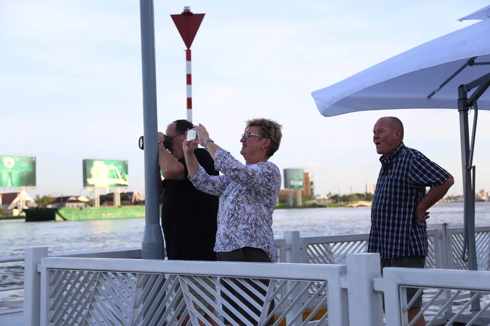Du khách thích thú ghi lại những hình ảnh sông nước ở ga tàu Bạch Đằng.