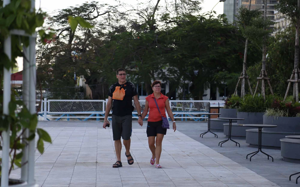 Du khách tản bộ trong khuôn viên ga tàu thủy Bạch Đằng.