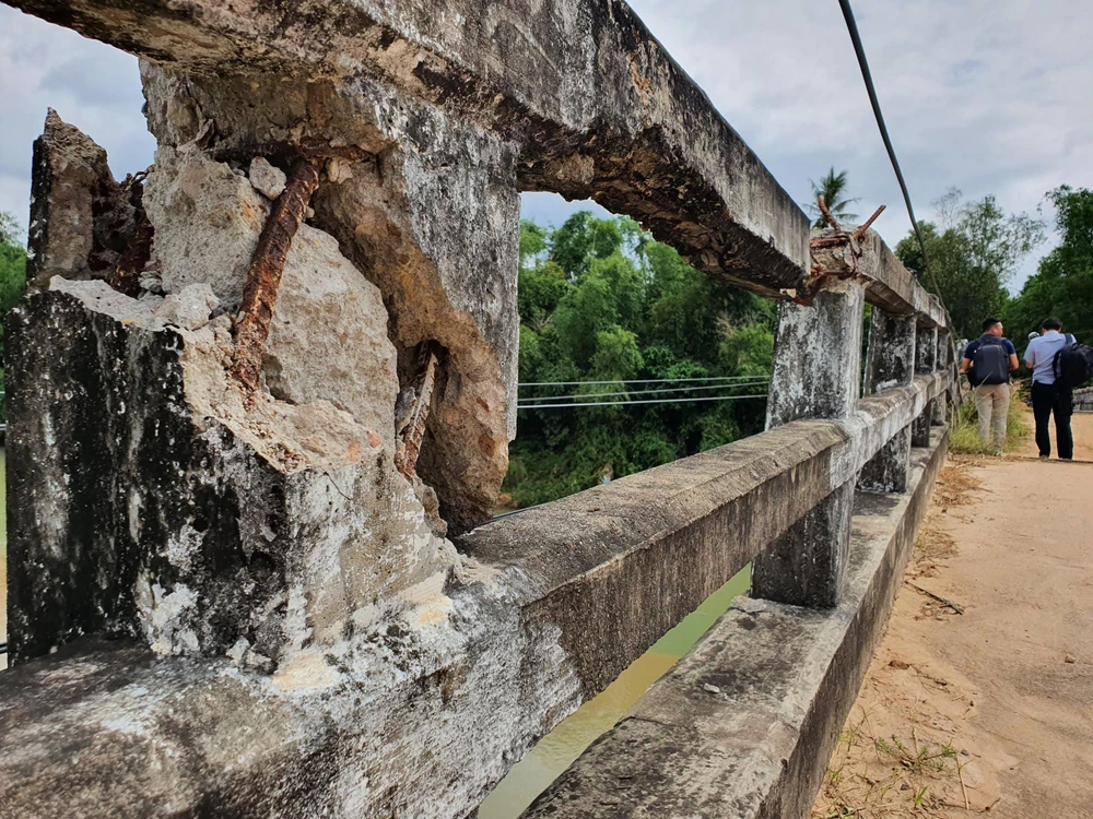 | Nhiều chỗ bị nứt toạc, bong tróc bê tông. Ảnh QN |