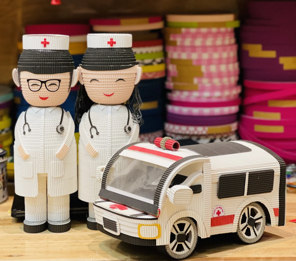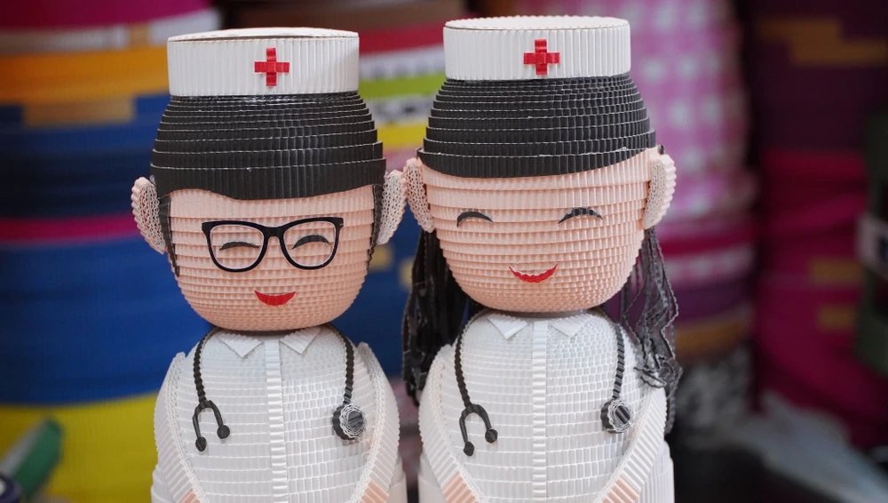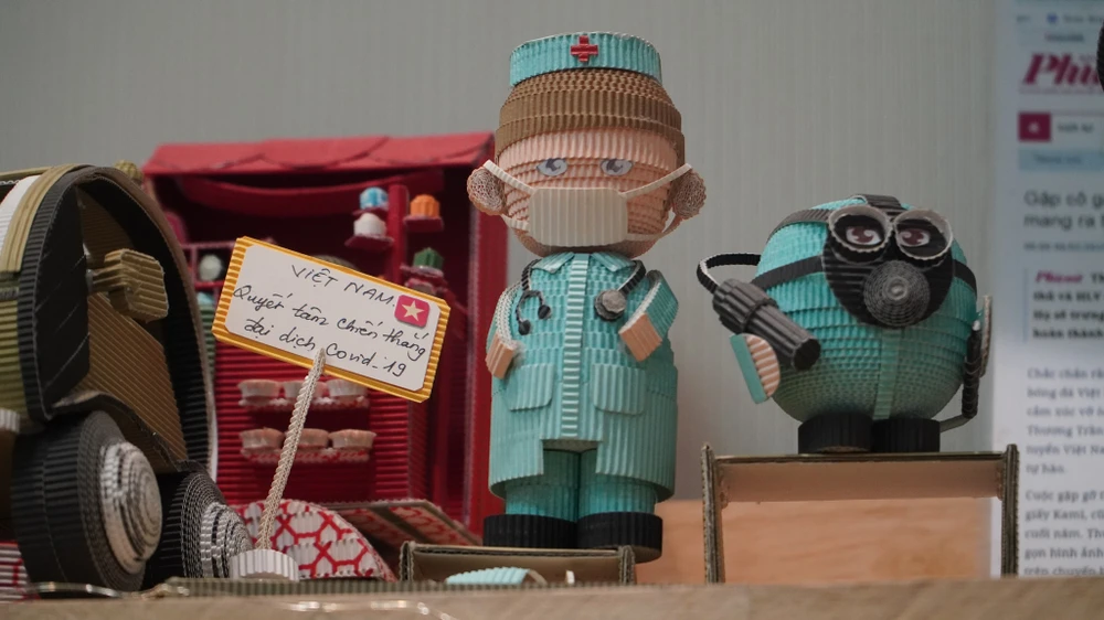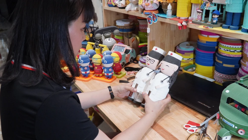 Chị Thương nói: "Đa số các y bác sĩ đều rất thích và cảm thấy bất ngờ. Những món quà xếp giấy như vậy rất độc và lạ, mang dấu ấn riêng của họ, có những dòng tri ân gửi đến y bác sĩ. Có một bác sĩ đã đến nhà và mình đã trao tặng những món quà này cho bác. Bác là người khám chữa bệnh miễn phí, mình cảm ơn bác rất nhiều. Gần đến 27-2 mình vẫn làm những mẫu chipi bác sĩ, hầu như năm nào 27-2 cũng có rất nhiều khách hàng đặt làm hình bác sĩ.". Ảnh: MINH TÂM