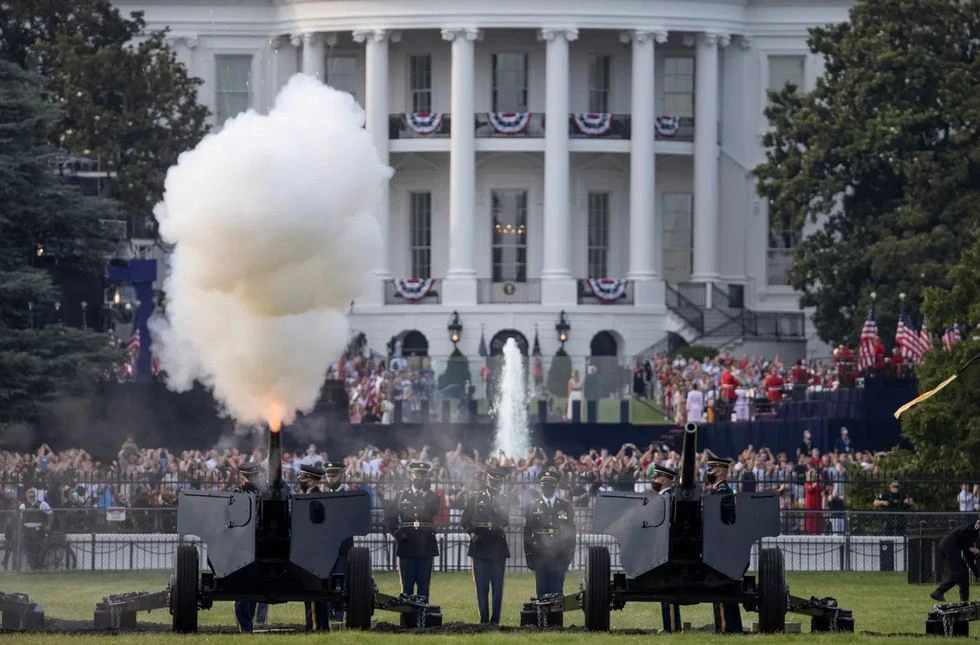 Mỹ bắn 21 phát súng đại bác chào mừng ngày Quốc khánh. Ảnh: AP