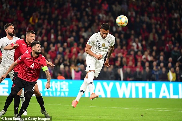 Tillsso đánh đầu mở tỉ số cho tuyển Pháp trong trận đấu mang tính thủ tục trước đối thủ Albania.