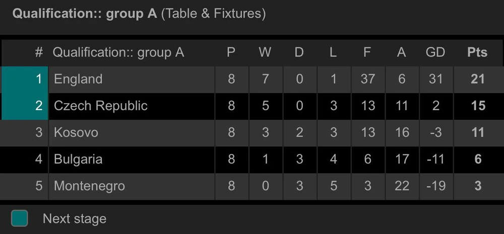 Hai bàn thắng còn lại được ghi bởi Rashford và sao trẻ đang thi đấu ấn tượng cho Chelsea là Mason Mount. Giành chiến thắng với tỉ số 4-0 trước Kosovo, tuyển Anh kết thúc vòng loại Euro với 21 điểm chiếm vị trí nhất bảng A. Cộng hòa Czech thất thủ 0-1 trước Bulgaria. Tuy nhiên, với việc đã có được tấm vé thứ hai tại bảng A để chơi Euro 2020, kết quả này không ảnh hưởng gì đến đội bóng của Jaroslav Silhavy. Cộng hòa Czech kết thúc vòng bảng với vị trí thứ hai bảng A với 15 điểm.