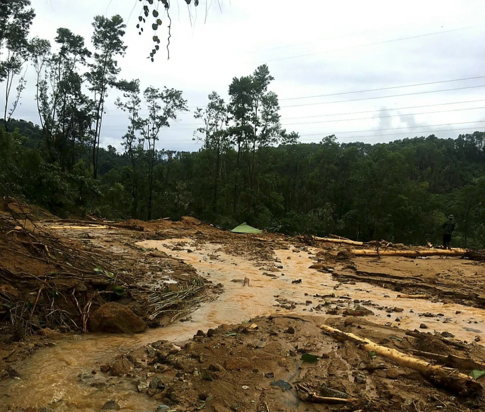 Vào lúc 0 giờ ngày 13-10, xảy ra sự cố sạt lở tại khu vực đoàn đang tạm nghỉ, có 8 người thoát ra khỏi khu vực sạt lở, còn 13 người hiện tại mất tích, chưa liên lạc được. Ảnh: CTV