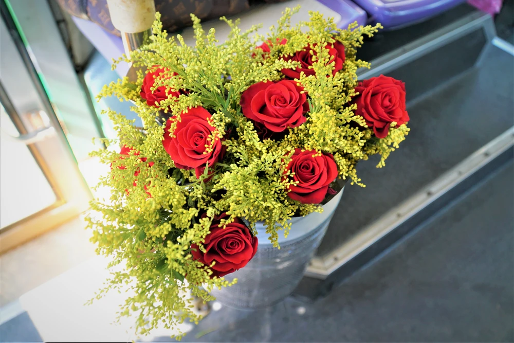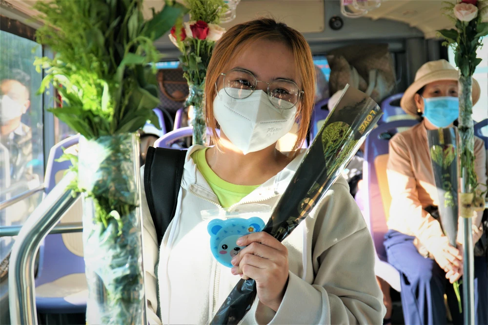 “Có 4 năm theo nghề tài xế xe buýt thì cũng từng ấy năm tôi tự bỏ tiền túi ra mua hoa để tặng các chị em ngày 8-3, năm nay do tình hình dịch nên không thể chuẩn bị chu đáo như mọi năm. Tối qua, tôi đã thức cả đêm để trang trí xe và cắt tỉa hoa hồng, hy vọng hôm nay các chị em phụ nữ sẽ có một ngày 8-3 thật hạnh phúc” - anh Lê Xuân Huy chia sẻ.